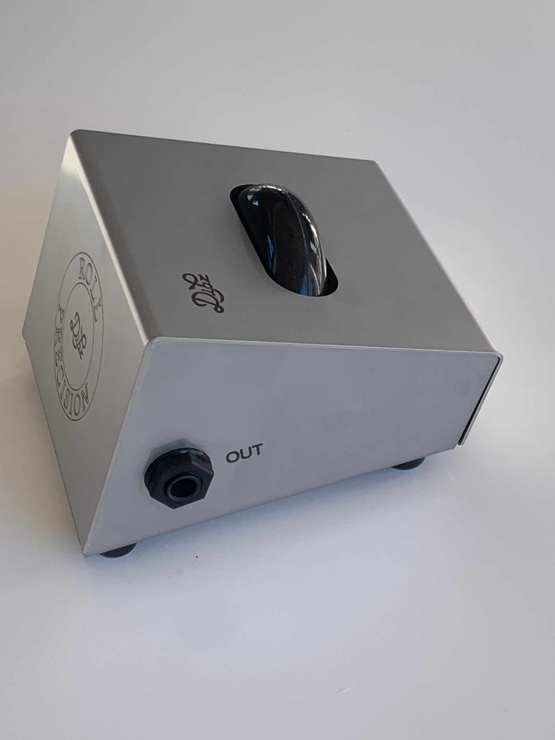 Cette pédale est une innovation française (brevet déposé) qui a été créée car aucune pédale ne permettait de trouver précisément et facilement le bon niveau sonore en situation réelle de jeu.